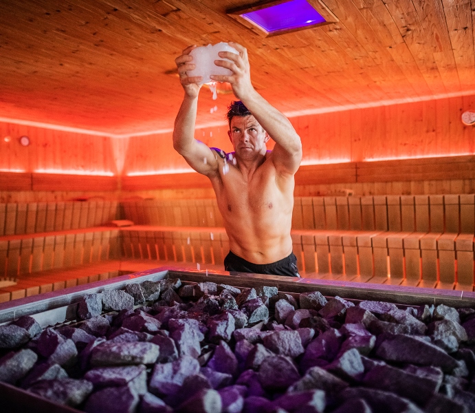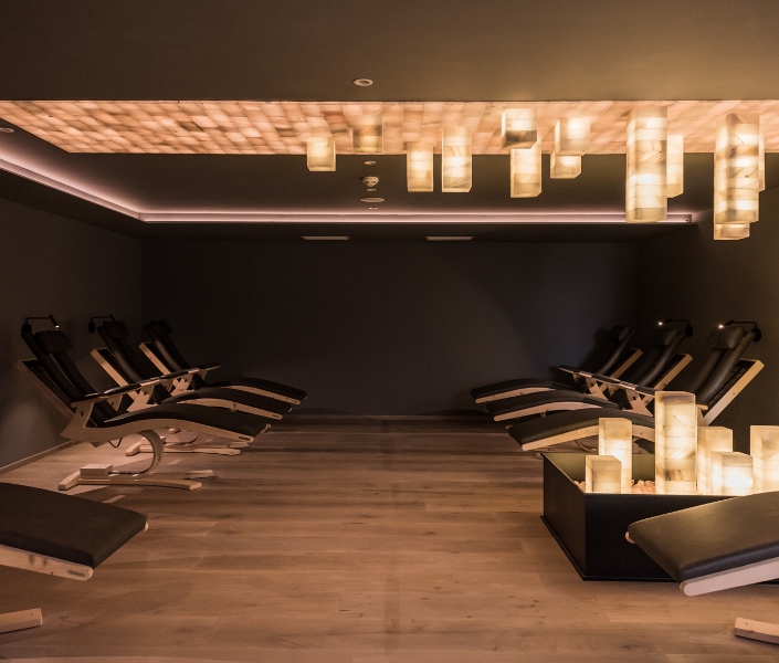 Si medita, ci si lascia andare alla vibrazione potente e al suono incredibile delle campane tibetane, si assiste all’intenso rituale con il fumo e si godono i diversi “Aufguss” che ogni giorno animano la grandissima sauna. I diversi appuntamenti prevendono anche peeling con sali speciali di alta qualità che levigano la pelle togliendo le cellule morte e preparandola a espellere tutte le tossine grazie all’intenso calore della sauna. Per sentire in modo più concreto il calore, si può provare la camminata sulle pigne caldissime, la pianta del piede riceve un massaggio simile alla riflessologia plantare: tutti gli organi vengono stimolati e il benessere è assicurato. Per il riposo dopo gli aufguss, la scelta è ampia: si può optare per le numerose sale relax all’interno della spa, come i lettini ad acqua oppure la suggestiva area “water shadow” con un gioco di luci creato dall’acqua che illumina le pareti, oppure scoprire la sala “salt & infrared” (sdraiandosi sui lettini gli infrarossi si accendono e scaldano la schiena) con le decorazioni di sale che creano un ambiente ovattato. O ancora provare i lettini sospesi, posti davanti alla grande vasca idromassaggio con vista sulle montagne, il cui leggero dondolio diventa una ninna nanna per prendere sonno più facilmente.