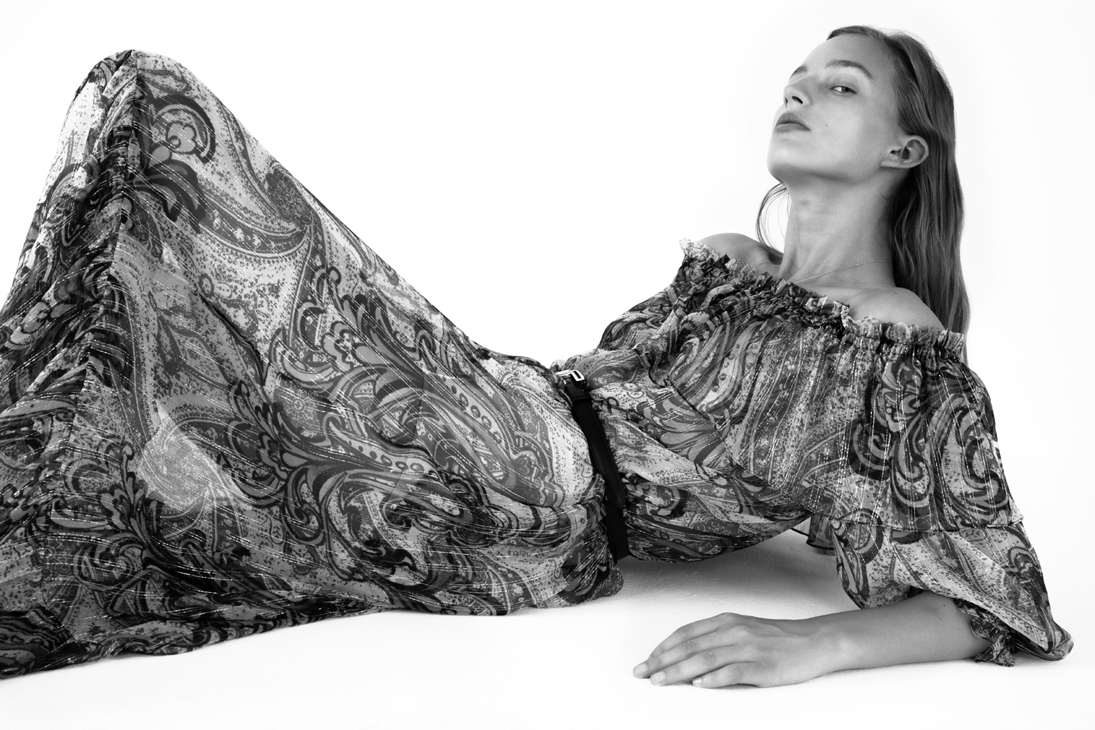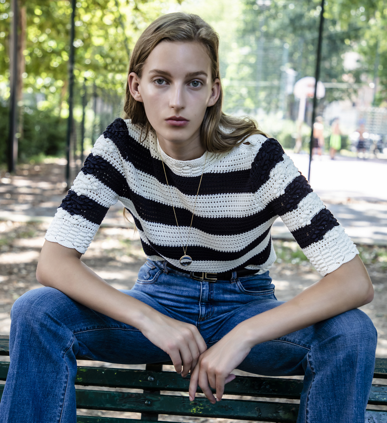 Un’altra identità dall’anima bohémienne contemporanea, dove viene celebrata una ricercata mescolanza di generi: dalla camicia denim, ai sognanti lunghi abiti stampati a piccoli fiori e grandi motivi paisley, dal bon ton delle maglie crochet in punto pizzo, al mini abito luccicante dall’animo rock. Qui trova spazio la dimensione marinière delle righe, del blu navy coi dettagli oro, dei blazer rubati al guardaroba maschile e declinati in un raffinato femminile.