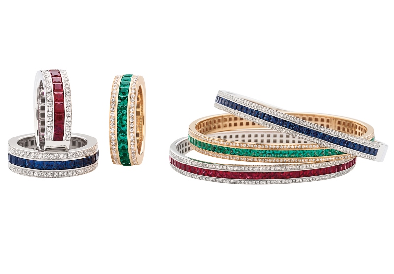 Un poetico “suono” di nuova luce per ricordarti di splendere sempre. L’atto 4, Sound, si ispira ai colori dell’arcobaleno: il rosso, il verde ed il blu sono i protagonisti indiscussi di questi gioielli. La nuova linea Rainbow è la combinazione perfetta di anelli, pendenti, orecchini e bangle nei classici dettagli in oro bianco e giallo, che si mixano a pietre preziose e diamanti nei profili.