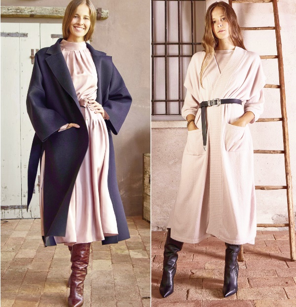Il cappotto è uno solo, il Vicenza, un capospalla over con profondi spacchi laterali e cintura a vestaglia. Non può che essere blu navy, perfetto di giorno e di sera.