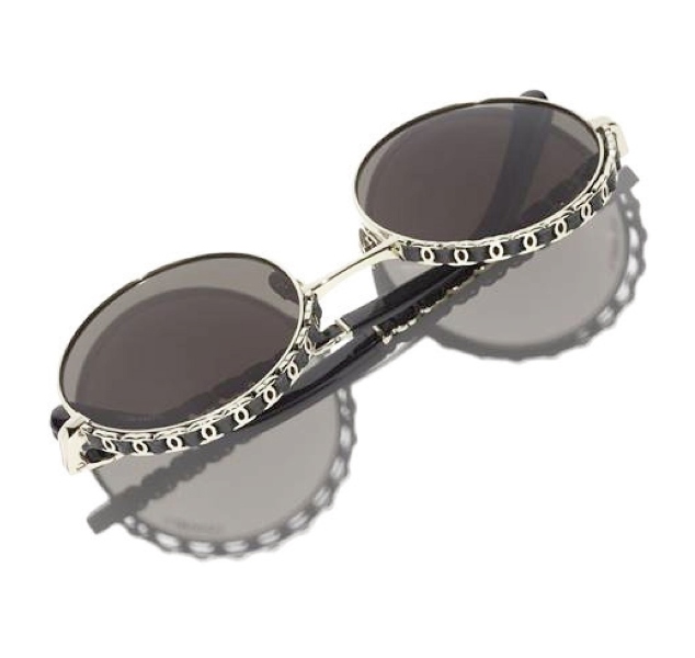 Il primo capitolo della collezione trae ispirazione dall’emblematica catena intrecciata con la pelle. In nero opaco, marrone, oro pallido o rutenio e adornato da maglie a doppia C, mette in risalto un paio di occhiali da sole rotondi in metallo e una forma aviator squadrata in acetato. Il sottile nastro di pelle nera, bordeaux, kaki o color cioccolato è intrecciato a mano in un gesto minuzioso, mutuato dal savoir-faire pellettiere della Maison. Questo dettaglio impreziosisce anche una montatura tonda e una farfalla, entrambe bicolore, completate da lenti blue-light blocking.