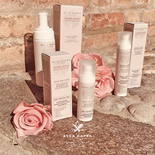 È arrivato l’autunno, le temperature si abbassano e la pelle del viso lancia un SOS. Parole d’ordine quindi è detergere, idratare e nutrire con prodotti specifici che sappiano coniugare delicatezza ed efficacia. Per questo Acca Kappa, marchio d’eccellenza nello sviluppo di prodotti per la cura e il benessere della persona, ha creato la nuova linea Ultra-Rich Natural Skincare, un trattamento completo per donare alla pelle idratazione, luminosità e elasticità. Questo rituale di bellezza si compone di tre prodotti: Mousse Crema Vellutata, Olio Gel Viso e Crema Viso Quotidiana, che lavorano in sinergia grazie all’azione di ingredienti di alta qualità di origine esclusivamente naturale.