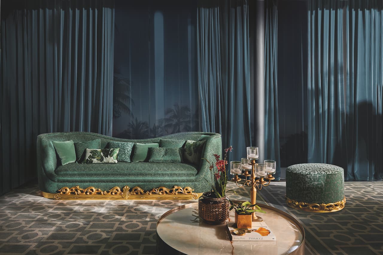 Appartiene al volume Allure, il divano Tiara, una proposta di ricercata eleganza. Lo schienale dai profili sinuosi esalta il fascino senza tempo della seduta accogliente, mentre la base è impreziosita da intriganti decori intagliati con precisione e maestria da artigiani esperti, che conferiscono un’allure sartoriale e lussuosa alle linee essenziali.