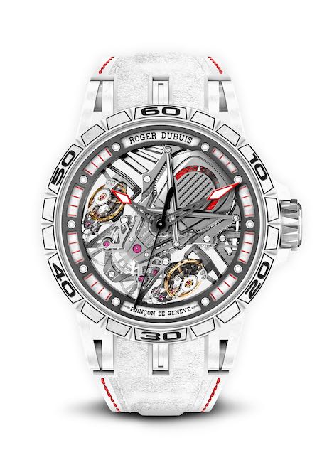 I fan dell’alta orologeria di tutto il mondo ormai sanno che da Roger Dubuis devono aspettarsi l’inaspettato. Da qualche anno la Maison s’ispira ad altre industrie avanguardistiche, un approccio che ha dato vita a un’alleanza iconica con i designer di supercar Lamborghini Squadra Corse. Il frutto di questa collaborazione è la dimostrazione di ciò che accade quando ingegneri visionari incontrano orologiai straordinari. L’Excalibur Aventador S, dotato dell’iconico calibro RD103SQ con cassa in Fibra composita di ceramica (CCF) e titanio, è stata la prima espressione orologiera di questa partnership adrenalinica. Ora proposto in un colore bianco candido per un’edizione limitata di soli 8 esemplari, l’Excalibur Aventador S – disponibile in esclusiva online – presenta una serie di elementi di design facilmente identificabili presi in prestito direttamente dal suo alter ego su quattro ruote: due bilancieri a spirale inclinati di 45 gradi, barre duomi, una riserva di carica che ricorda elementi del mondo delle corse e cinturino in Alcantara, a cui si aggiunge l’impiego in anteprima mondiale della Fibra composita di ceramica. Questo materiale innovativo ha un peso del 20% inferiore rispetto a quello del carbonio ed è il risultato di un processo manifatturiero sviluppato da Roger Dubuis – vera prova di prodezza tecnica. La resina, impiegata nell’industria aerospaziale come schermo per il calore e qui utilizzata in combinazione con la resistentissima ceramica, è uno dei materiali più duri esistenti. L’essere riusciti a farne uso in orologeria è una vera e propria affermazione del primato di Roger Dubuis nel campo della tecnica.
