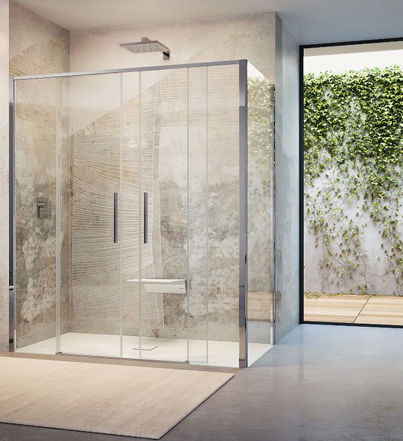 Con l’obiettivo di offrire una linea sempre più ampia e versatile, alle configurazioni già esistenti – in nicchia (TN), con porta scorrevole e laterale (TN-1 + TW) e ad angolo (TC) – è stato inserito il modello con due porte scorrevoli centrali e 2 vetri fissi in linea, declinato nelle versioni in nicchia e ad angolo.