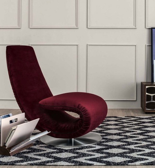 Per immergersi in una buona lettura, ecco Ricciolo, con tutta la sua eleganza: una poltrona e una chaise-longue dotata di un meccanismo pieghevole brevettato, disponibile in diversi rivestimenti, pelle, tessuto e velluto nelle varie nuance presenti nel campionario. Seduta fluida, distesa, che si allunga nella stanza o poltrona solida eppure morbida come un’onda.
