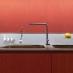 Per la cucina è stato scelto il rubinetto Levo: una serie in acciaio inossidabile AISI316L. La sua forma e funzionalità sono ridotte al minimo, trasformando il prodotto in un elemento d’arredo essenziale e senza tempo. Il semplice – ma tecnicamente avanzato – movimento di attivazione, rappresenta, nella sua forma più pura, le fondamenta della serie e del prodotto stesso. Nel rispetto della filosofia del brand, Levo è stato disegnato nel rispetto dell’ambiente. La cartuccia progressiva riduce l’utilizzo della caldaia, l’aeratore aiuta a ridurre il flusso dell’acqua e l’acciaio inossidabile AISI316L è un materiale completamente riciclabile, atossico e resistente agli attacchi di acqua salina.