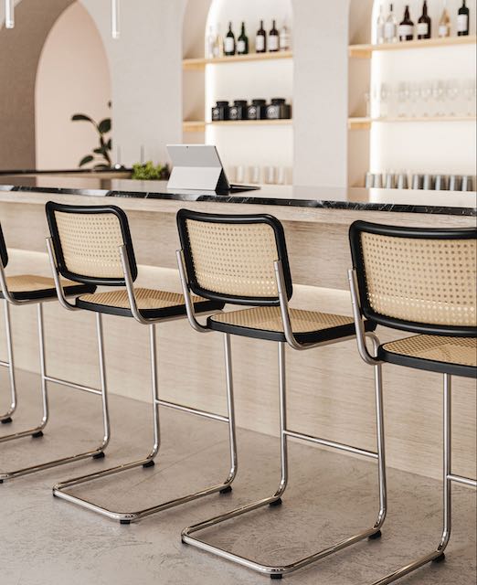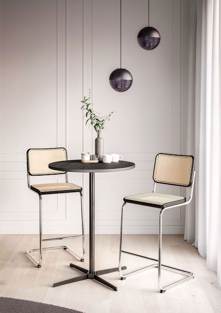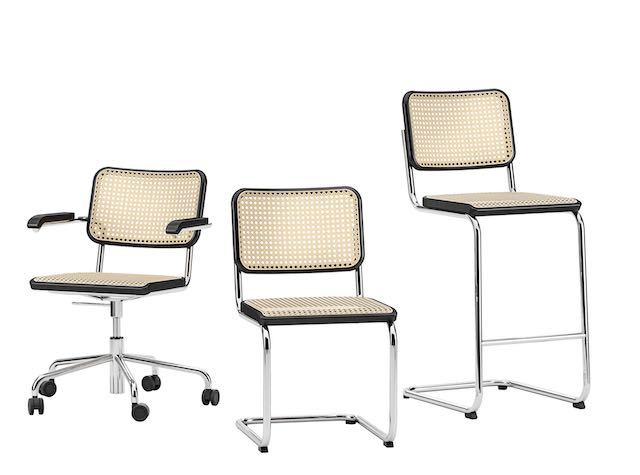 Il progetto si basa sul famoso modello cantilever in tubolare d’acciaio S 32, ideato da Marcel Breuer negli anni ’20, che deve la sua popolarità all’intrigante contrasto fra i materiali impiegati: da una parte gli elementi in legno curvato con la caratteristica paglia di Vienna mutuati dalla tradizione Thonet e, dall’altra, il tubolare d’acciaio ridotto alla misura essenziale. Le linee chiare e minimaliste, abbinate all’intreccio arioso della canna d’India, rendono i modelli S 32 VH e S 32 VHT facilmente integrabili negli interni più diversi, dalle sale di ritrovo agli ambienti di ufficio, alle reception e, ovviamente, nei ristoranti e nei bar. Con il suo peso ridotto (8,5 kg) la comoda seduta può essere facilmente spostata o sollevata a mano.