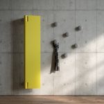 Byobu prende ispirazione dal tipico paravento decorativo giapponese, le cui forme squadrate ed essenziali si evolvono in un corpo scaldante singolo o a doppia anta, che ruota intorno ad un perno. Le salviette e l’accappatoio in bagno, oppure le giacche e i cappotti nel living, possono essere così celati dietro la struttura mobile del radiatore e posizionati su Momoko, il gancio da fissare, singolo o in gruppo, alla parete.