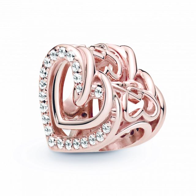 Lasciare che la dolce metà porti sempre con sé il tuo cuore, con il charm pendente inciso Cuore e Rosa e il charm Cuore Intrecciato Scintillante in Pandora Rose. Coccolarsi e concedersi un regalo elegante con i nuovi Orecchini Cuore Desiderio Scintillante o con la nuova Collana Cuore Desiderio Scintillante.