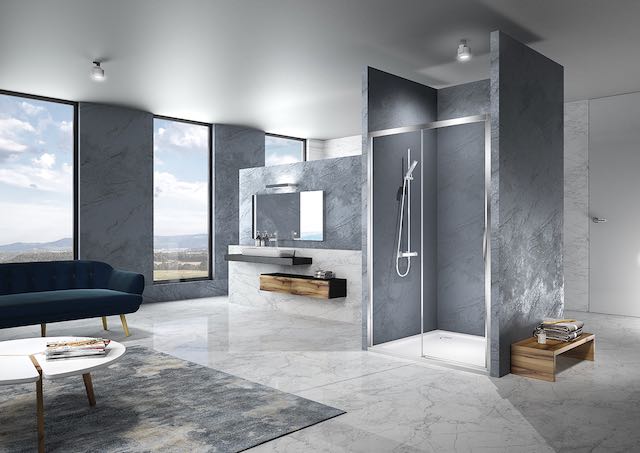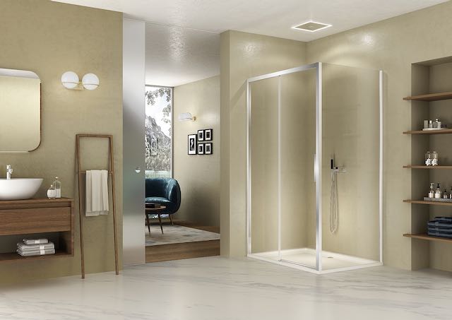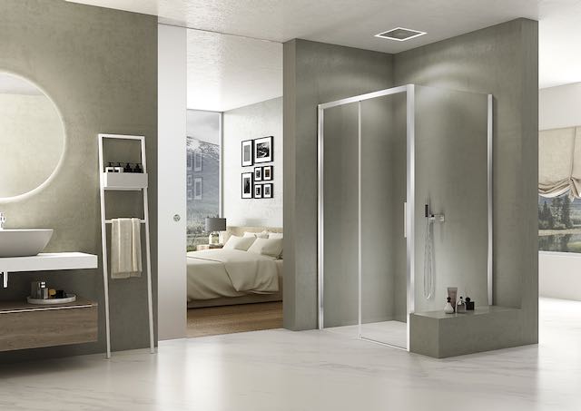 La nuova versione di stila 2000 si presenta ora priva del profilo inferiore, caratteristica che consente un accesso semplificato in quanto privo di barriere, e una più facile pulizia grazie al miglioramento del sistema di sganciamento dell’anta. Sempre realizzata in vetro temperato di sicurezza da 6 mm, stila 2000 è disponibile con profili in alluminio opaco o lucido e cristallo in finitura trasparente, Cincillà, nebula o serigrafia satinata centrale.