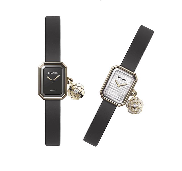 L’orologio Première Extrait de Camélia Charm è stato realizzato in Edizione limitata di 1000 pezzi. E’ stato realizzato con cassa in oro giallo, fondello in titanio, ciondolo camelia in oro giallo con un diamante taglio brillante (~ 0,04 carati) e quadrante laccato nero. Il cinturino è in caucciù nero con tocco vellutato e la fibbia ad ardiglione è in oro giallo. Movimento al quarzo di alta precisione. Funzioni di ore e minuti. Questo orologio è disponibile anche nella versione con il quadrante impreziosito da 116 diamanti taglio brillante (~0.37 carati), cinturino in caucciù nero con velluto touch e fibbia ardiglione in oro giallo. Movimento al quarzo di alta precisione. Funzione di ore e minuti. A completare questo orologio, il ciondolo camelia in oro giallo arricchito da 26 diamanti taglio brillante. Completa il set l’anello charm Extrait de Camélia realizzato in oro giallo e diamanti.