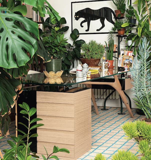 A richiesta è disponibile un executive kit che prevede il rivestimento in cuoio 95 nero del fondo del piano estraibile e del primo cassetto della cassettiera, un sottomano in cuoio 95 nero da 80×50 cm e un portapenne in legno massello – nelle medesime finiture della scrivania – che riprende le forme sinuose del piano del tavolino Arabesco.