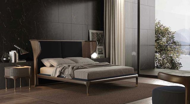 Un arredo sofisticato, elegante e curato in ogni minimo dettaglio. La collezione Joyce di Morelato, disegnata da Libero Rutilo, esprime l’essenza dell’azienda: il fascino di uno stile contemporaneo frutto del sapere della miglior tradizione ebanista italiana. Dettagli preziosi e materiali di altissima qualità per tutti gli arredi in collezione, destinati a ogni ambiente di casa. Per la zona notte Morelato propone il letto Joyce in legno di frassino sagomato con piedini in ottone e con una scenografica testiera, in parte imbottita e in parte realizzata in paglia di Vienna. La linea molto particolare lo rende un elemento d’arredo moderno dalla forte identità. Abbinato al letto l’azienda presenta il comodino e il comò Joyce, entrambi in legno di frassino sapientemente lavorato.