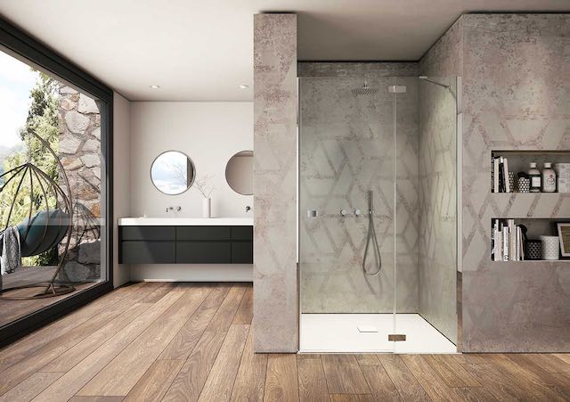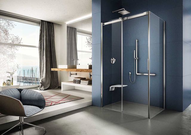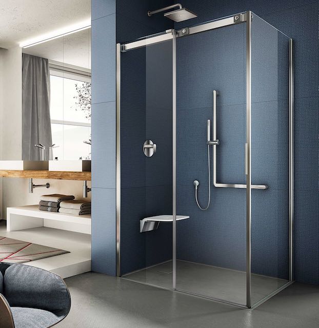 All’interno della cabina, il sedile ribaltabile della Serie 300 e il sostegno per doccia a 90° con saliscendi della Serie 500 di Provex. La serie Combi/Combi Free comprende una vasta gamma di soluzioni standard e su misura, caratterizzate dalla massima trasparenza grazie al sistema a cerniera. Le porte sono dotate di meccanismo di sollevamento-abbassamento integrato sempre attivo che garantisce una maggiore durata della guarnizione inferiore, consentendone la chiusura graduale.