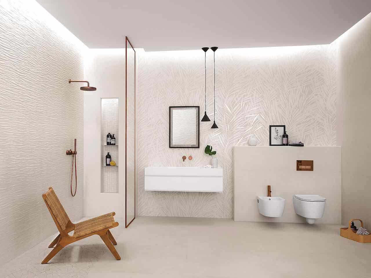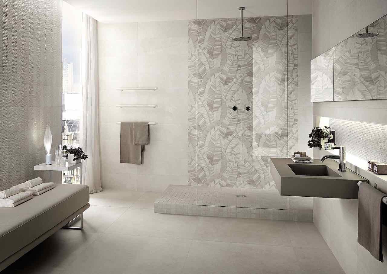 FAP ceramiche, azienda tra i maggiori produttori di rivestimenti del settore ceramico, ha riprodotto sulle superfici numerose sfumature green, rigogliosi motivi vegetali e fantasie tropicali come inno alla natura. Spazio quindi agli intrecci di diverse tipologie di piante, foglie e fiori disegnati in maniera dettagliata, o stilizzati dal forte impatto visivo ed emozionale. Tra le linee in pasta bianca di FAP ceramiche, ben rappresentano questo mood i decori di Bloom, Nux, Sheer e la novità Summer.