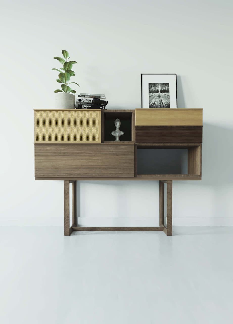 Sono numerose le composizioni che si possono ottenere personalizzando e combinando i vari elementi di Swing dalla zona giorno a quella notte con proposte originali e raffinate come il letto sommier Swing. La particolare testiera di questo modello, composta da legno e parti imbottite in tessuto disponibili in tantissimi colori e texture, crea uno scenografico effetto patchwork.