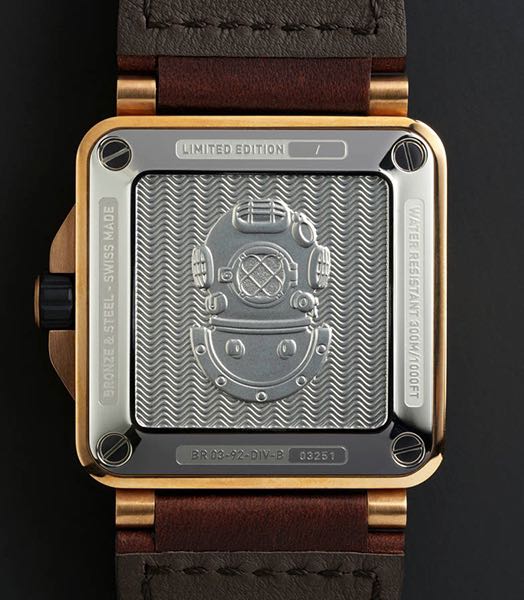 Disponibile in edizione limitata di 999 esemplari, il BR 03-92 DIVER RED BRONZE mostra sul fondello un’incisione rappresentante il casco di uno scafandro. Prezioso e resistente, il BR 03-92 DIVER RED BRONZE è un orologio di carattere, progettato per accompagnare il gentleman avventuriero per mare e per terra.