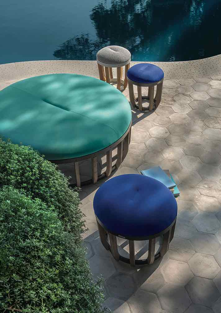 Nuovi e vivaci elementi arricchiscono l’iconica collezione disegnata da Patrick Norguet. Swing, la collezione lounge e dining nata dalla collaborazione tra Ethimo e Patrick Norguet, diventa ancora più completa con i nuovi pouf dal design circolare, che permettono di completare gli ambienti living outdoor offrendo la possibilità di rilassarsi su una seduta ‘extra’.