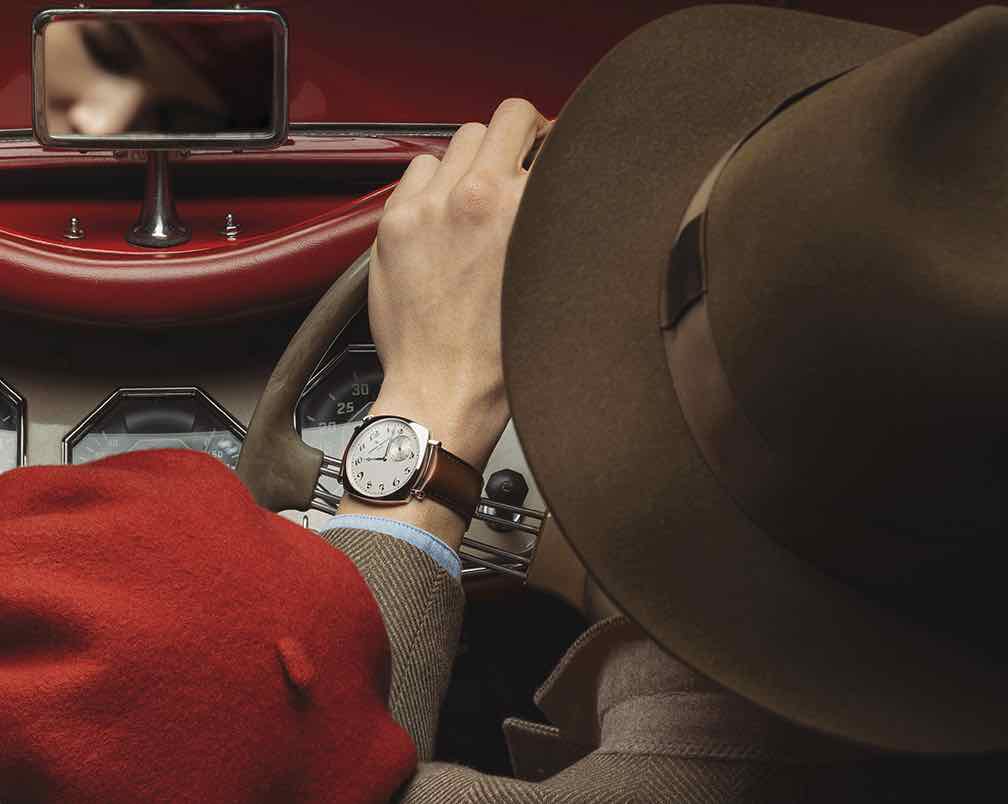 Grazie alla cassa di soli 36,5 mm, l’American 1921 si adatta anche ai polsi più sottili, è scolpita in oro bianco; la silhouette sottile incornicia un quadrante argentato grain. con numeri arabi dipinti di nero e un contatore dei piccoli secondi azzurrato con sottili lancette delle ore e dei minuti in oro nero “pomme”. Aggiungendo un tocco retrò in sintonia con il design originale, la circonferenza del quadrante è accentuata dalla minuteria.