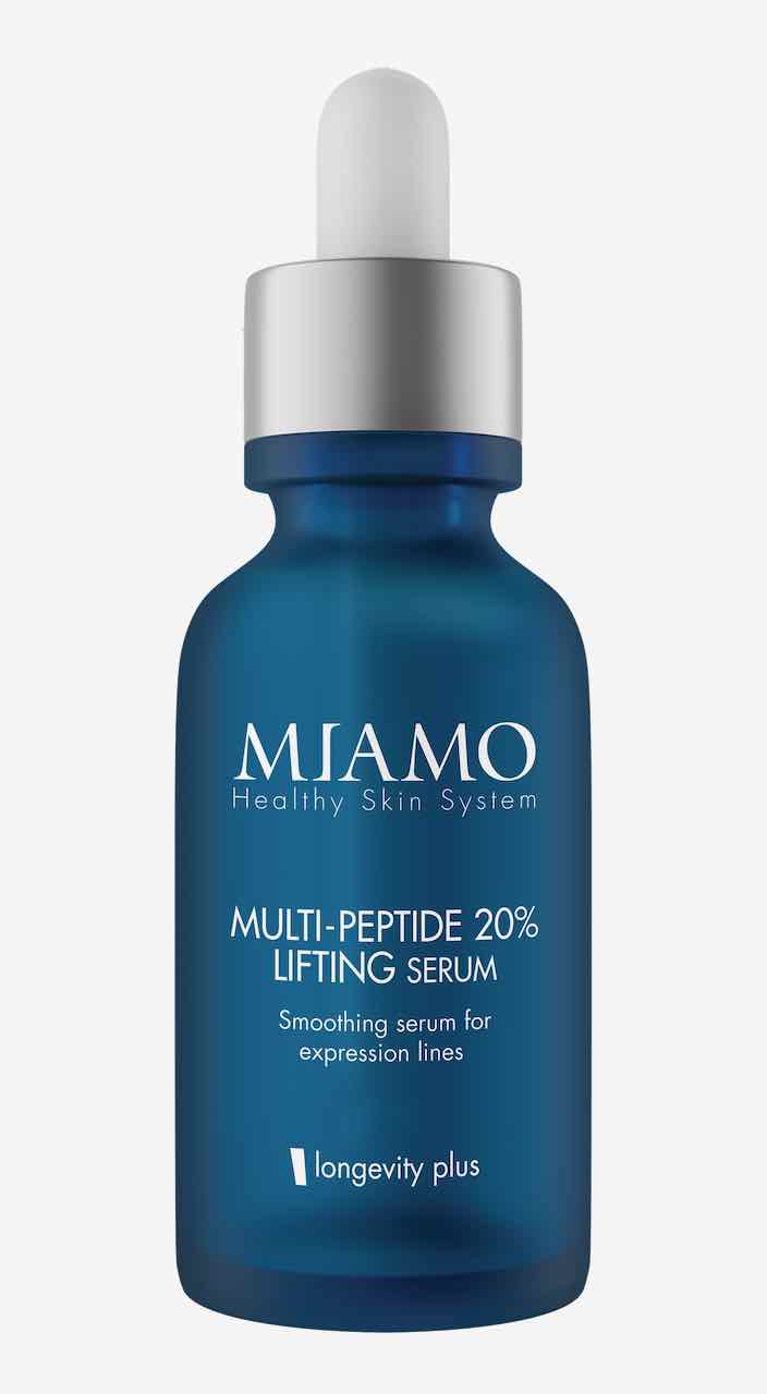 Per vincere le rughe d’espressione, la via più efficace è usare principi attivi che agiscano sulla contrazione muscolare, contribuendo così a ridurle visibilmente. Per fare questo, Miamo ha studiato una nuova formula all’avanguardia: il suo noto siero ai peptidi, Multi-peptide 20% Lifting Serum, si veste di un nuovo pack e di una formulazione effetto lifting potenziata.
