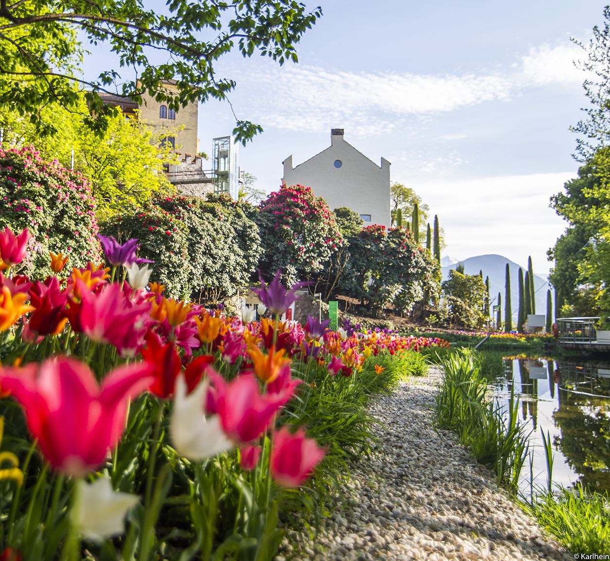 I Giardini di Castel Trauttmansdorff a Merano si estendono su una superficie di 12 ettari con un dislivello di 100 metri, dove la vista si apre su 80 spettacolari ambienti botanici, sulle montagne circostanti e sulla città di Merano. Sui sentieri che si snodano dolcemente lungo il percorso, si va alla scoperta di quattro aree tematiche che ospitano piante provenienti da tutto il mondo, attraversando terrazzamenti soleggiati e ruscelli gorgoglianti. Sul versante meridionale, ai piedi del castello, si trovano gli esotici Giardini del Sole dal fascino tipicamente mediterraneo, con un oliveto, cactus, aloe e agavi.