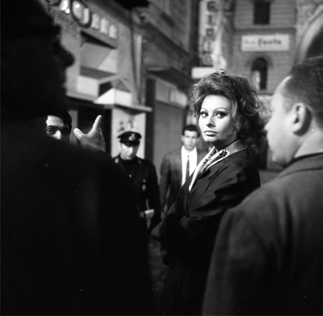 La grande presenza di artisti a Roma, che supera le barriere d’oltralpe, è documentata anche nelle fotografie che rappresentano il rapporto tra cinematografia statunitense e italiana e le sue personalità. Inoltre, in mostra sono proposti scatti fotografici che ritraggono i protagonisti cardini della cinematografia italiana degli anni ’60.
