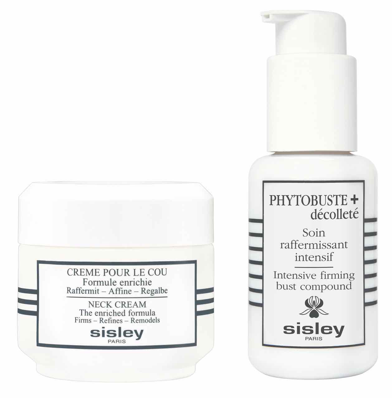 Per la zona del collo Sisley propone Crème pour le Cou, una crema che risponde alle esigenze specifiche e aiuta a ridefinire l’ovale. La sua texture ricca e cremosa si fonde sulla pelle facilitando un massaggio prolungato del collo. L’estratto di semi di Avena (un attivo dalle proprietà tonificanti), regala un immediato effetto lifting, mentre la Caffeina, associata all’estratto di Alga Rossa e a quello di Ippocastano, esalta l’azione levigante. Anche il décolleté ha il suo trattamento e si chiama Phytobuste+Deécolleté, un soin rassodante ad azione intensiva. L’estratto di semi d’Avena dona omogeneità al décolleté rassodandone immediatamente la pelle mentre gli estratti di Centella asiatica e di Noce ne migliora l’elasticità cutanea. Infine, il burro di Karité, l’olio di Girasole e la Glicerina di origine vegetale idratano, nutrono e donano bellezza alla pelle.