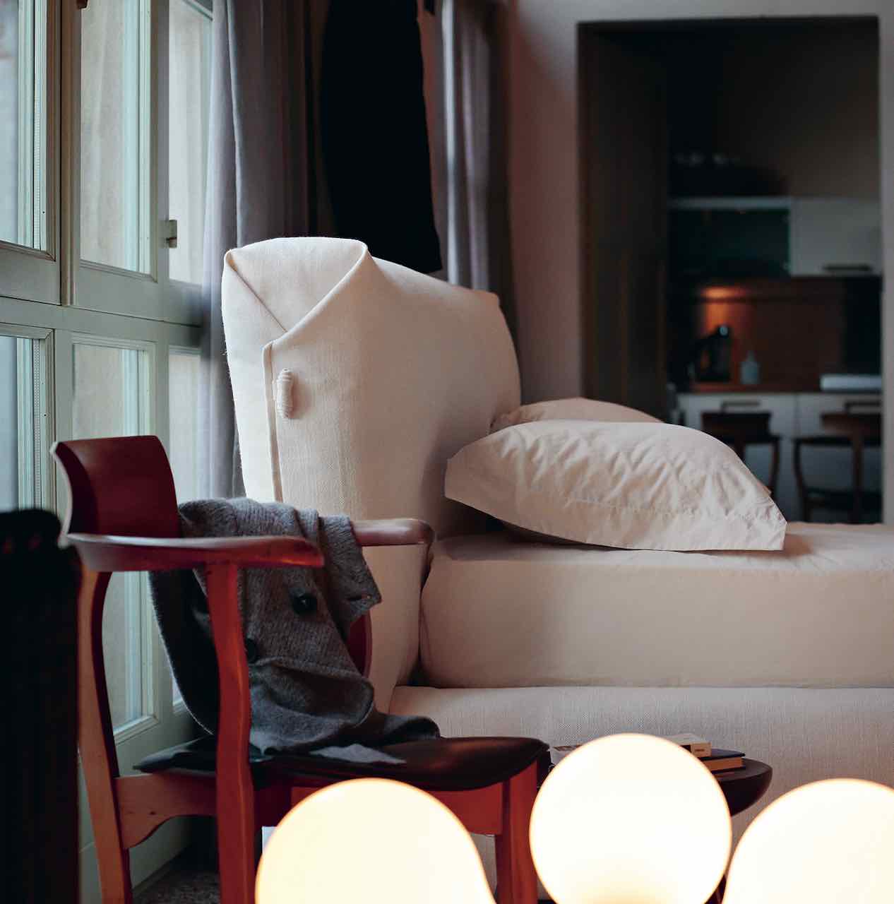 Allan interpreta la vocazione al design di Noctis attraverso l’attenzione particolare ai dettagli artigianali e all’assoluta qualità: la testata e il giroletto sono realizzati in soffici schiumati abbinati a ovatta, caratteristica che lo rende assolutamente morbido al tatto in ogni parte. Il gusto ricercato di Allan s’impone, infatti, con la sua morbida testata e diventa elegante e raffinato protagonista di ogni tipo di ambiente. L’originale chiusura ‘a busta’ sul laterale della testata si trasforma quasi nella chiusura di una giacca, con gli alamari rivestiti nel medesimo tessuto del rivestimento, coronando la vocazione sartoriale di questo motivo. Oltre che dall’ampia scelta di rivestimenti e tonalità tra cui scegliere, l’estrema versatilità è rappresentata dalla possibilità di abbinare differenti piedi in legno – natural, bianco, wengè o verniciato colore – per dar vita alla proposta più in linea con i propri gusti.