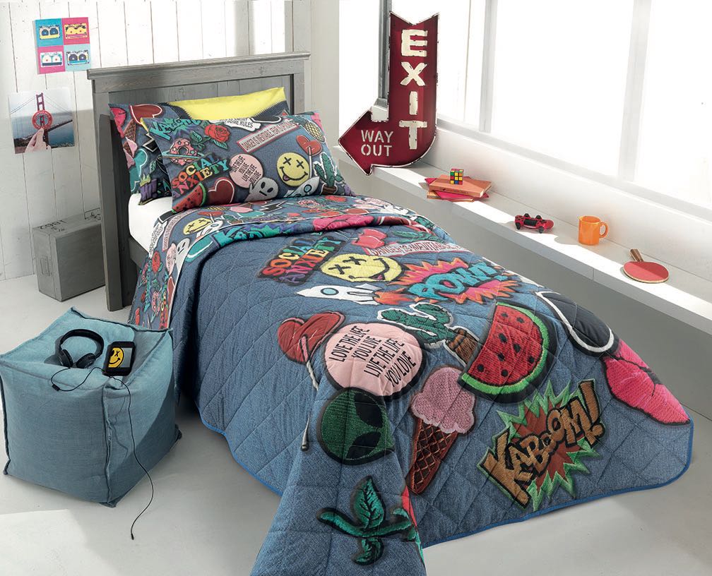 Nella collezione Teen, pensata appositamente per i più giovani, il copriletto leggero diventa colore ed energia per le camerette. Gli amatissimi disegni Evolution e Medley oggi saranno disponibili anche nella versione copriletto trapuntato. Con questa linea, il Gruppo Gabel ha favorito l’incontro tra lo spirito della gioventù e l’allegria della bella stagione, creando nuovo valore per gli spazi domestici dei ragazzi, sempre più luoghi di relax e benessere.
