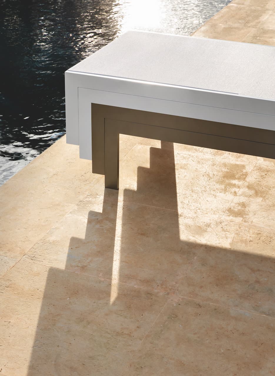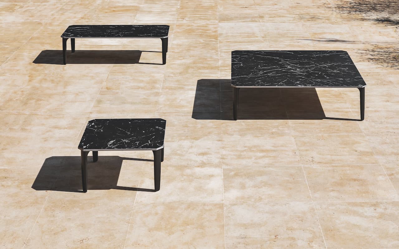 I tavolini PUSH hanno una struttura in alluminio verniciato a polveri epossidiche in tre colori (bianco, gunmental e grigio sabbia metallizzato), maneggevole ed ideale per l’utilizzo in ambienti esterni. Il top in gres con spessore 12 mm è proposto in 3 diverse finiture – marmo bianco, marmo nero e pietra – per abbinarsi al meglio con gli imbottiti che arredano la zona relax outdoor. A caratterizzare il modello è il taglio diagonale che definisce i quattro angoli. 3 anche le misure in cui è disponibile: 60×60 cm, 60x120cm e 120x120cm, tutti con altezza 30 cm.