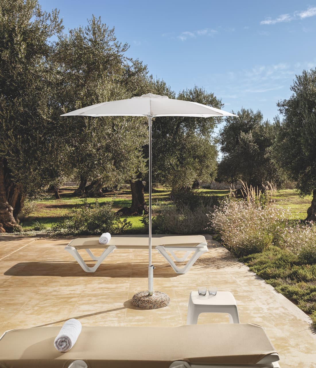 Il tavolino BALI, sempre realizzato in polipropilene, si accompagna seguendo i colori disponibili per la struttura del lettino. La collezione BALI è completata dall’ombrellonein tessuto acrilico con struttura in acciaio, disponibile in 2 versioni: tondo con diametro di 2,5 m oppure quadrato con lato da 2 m.
