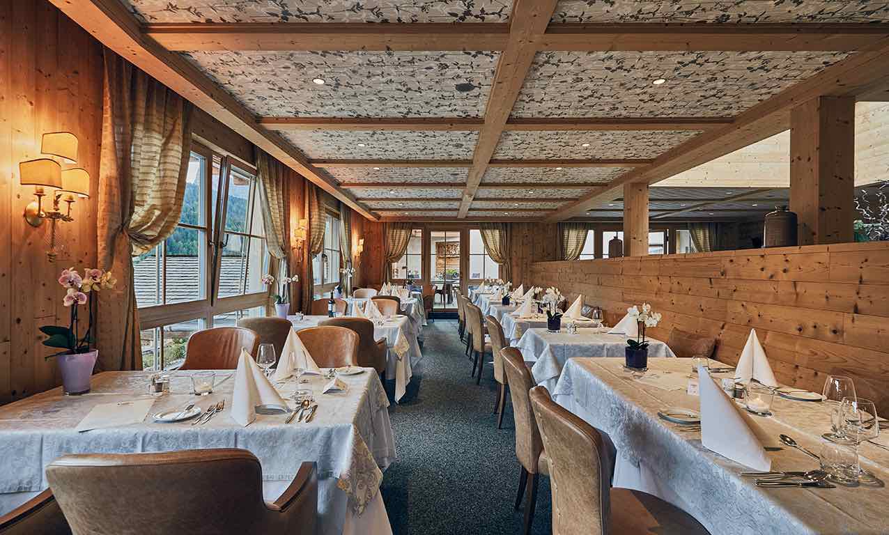 Il wellness continua a tavola, grazie alla cucina genuina e biologica dello Chef Claudio De Marc, che nei suoi piatti valorizza le materie prime del territorio rivisitando la ricca tradizione gastronomica altoatesina. Un buon piatto non può che essere accompagnato da un’etichetta pregiata della fornita cantina vini dell’hotel.