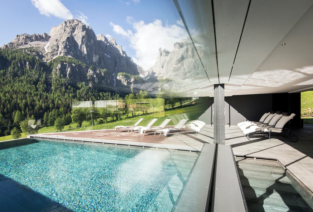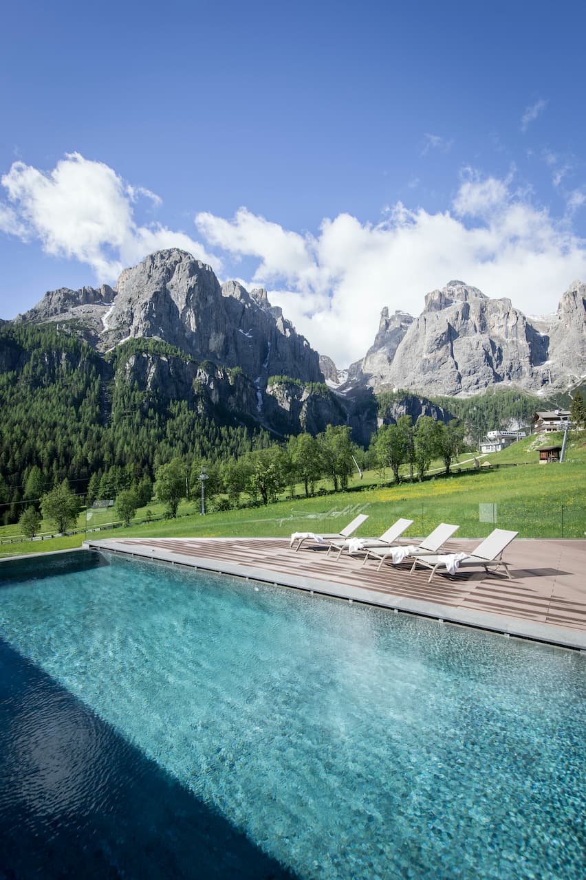 Il centro benessere – collegato direttamente con la piscina esterna riscaldata, un’emozione unica per sentirsi parte del paesaggio – è il luogo dove lasciarsi andare e rigenerarsi completamente, complici la grande piscina coperta al clorozono, le cui vetrate offrono una vista privilegiata sul paesaggio dolomitico; la Sky Room panoramica dedicata al puro relax; il bagno turco; la sauna finlandese; la sauna salina e la sauna per famiglie dedicata anche ai bambini, oltre al grande spazio per il fitness. Originali e legati al territorio i trattamenti di benessere (alla stella alpina, al burro di capra, alle mele, al pino mugo, al cirmolo). L’hotel è votato all’arte e alla bellezza in ogni dettaglio: dipinti d’autore, statue e oggetti provenienti da ogni parte del pianeta sono custoditi nelle aree comuni e nella collezione d’arte moderna nella galleria privata Art Gallery Renèe. Fuori dalla porta si apre un mondo meraviglioso da scoprire con percorsi di trekking e mountain bike, sui sentieri del Parco naturale Puez – Odle o del mitico Giro del Sella, e ancora la via ferrata Tridentina del Pisciadù, e i Prati dell’Armentara che sbocciano in un tripudio di fioriture. Con il Mountain Pass Alta Badia, l’auto si dimentica in garage. Inoltre, gli amanti del green trovano un campo da golf a 9 buche vicinissimo all’hotel.