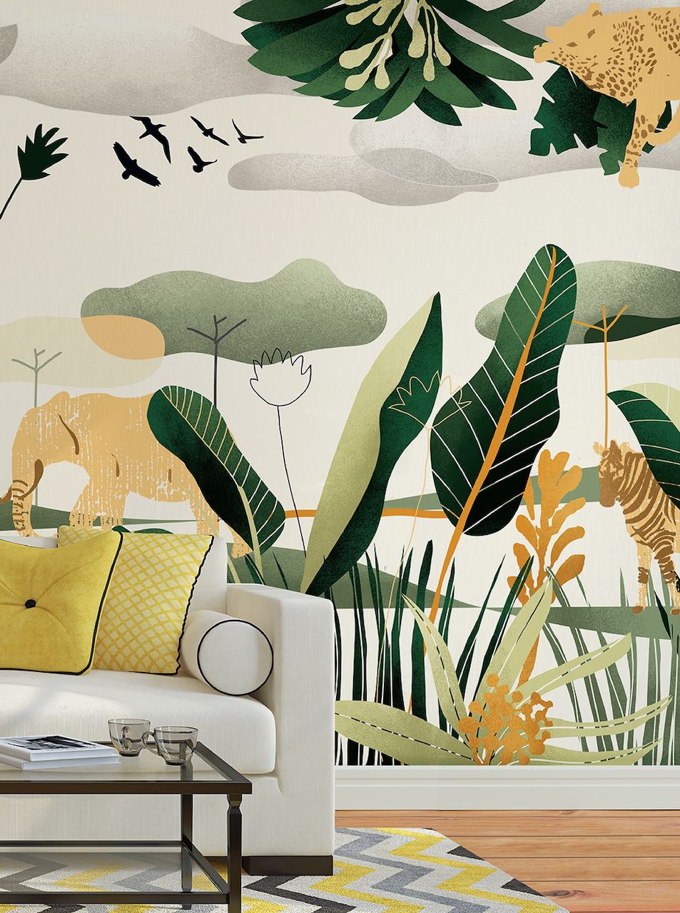 Prodotta su misura, la carta da parati è fornita in rotoli di larghezza a partire da 57 cm e senza limite d’altezza.
