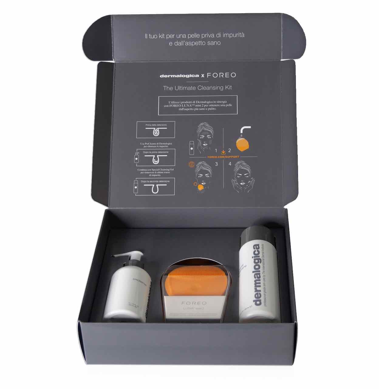 Dall’unione tra i prodotti iconici della doppia detersione di Dermalogica, formulati per rimuovere residui di trucco, impurità, sebo in eccesso e inquinamento rispettando l’equilibrio e la salute della pelle, e il range FOREO LUNA, pluripremiati massaggiatori viso detergenti amati dalle celebrity di tutto il mondo, ideali per offrire una detersione avanzata e rendere la pelle più fresca e luminosa in piccoli e semplici gesti, nasce l’esclusiva ed imperdibile edizione limitata The Ultimate Cleansing Kit.