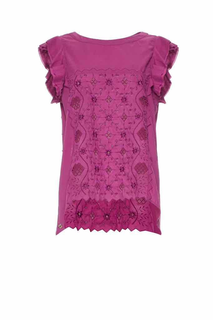 Un ricamo leggero ed elegante, in cotone fresco e passe-partout: il segreto del sangallo risiede nella sua praticità e nella sua bellezza essenziale. Manila Grace propone per l’estate una serie di capi impreziositi da questo motivo classico e chic. Ci sono le camicie smanicate fresche, nelle sfumature del bianco, del blu e del viola, decorate da trame floreali e geometriche di sangallo, in impalpabile popeline di cotone. I pantaloni freschi e svelti presentano invece una serie di ricami circolari: eleganza evergreen e pratica con un tocco sofisticato.