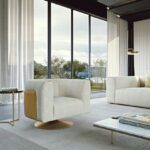 fissa sia in quella girevole, e proprio questo aspetto introduce un’ulteriore novità tra le proposte dell’azienda. Ancora, il rivestimento del divano e della poltrona – entrambi completamente imbottiti – è disponibile in pelle, in tessuto, o in entrambi i materiali. Immaginata come elemento più versatile, perché capace di accostarsi ad altre collezioni di Turri, la poltroncina Lyra si fa emblema del più sofisticato gusto contemporaneo. La base in legno massello di noce, affusolata e leggera, ricorda i bracci dell’antico strumento musicale e sorregge una struttura imbottita, concava – rivestita in pelle o tessuto – che circonda il corpo in un delicato abbraccio. Un morbido cuscino rende infine ancora più confortevole la seduta, ideale nella zona giorno come nella zona notte. Così, Soul e Lyra completano il quadro delle numerose novità lanciate da Turri nel 2021, e rafforzano la collaborazione tra la storica azienda brianzola e lo Studio Viganò.