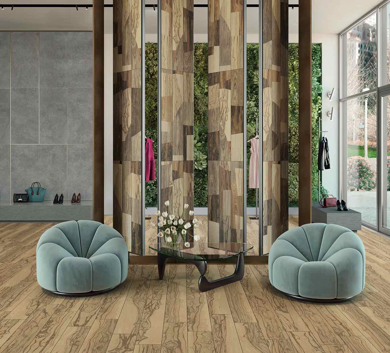 Perfetta negli ambienti commerciali – showroom, uffici e luxury hotel – ma anche nei contesti residenziali più dinamici, la linea Ultramod unisce l’estetica decorativa alla comodità e versatilità del rivestimento ceramico, con estetiche inedite e fuori dagli schemi che rispondono alle esigenze di architetti e progettisti.