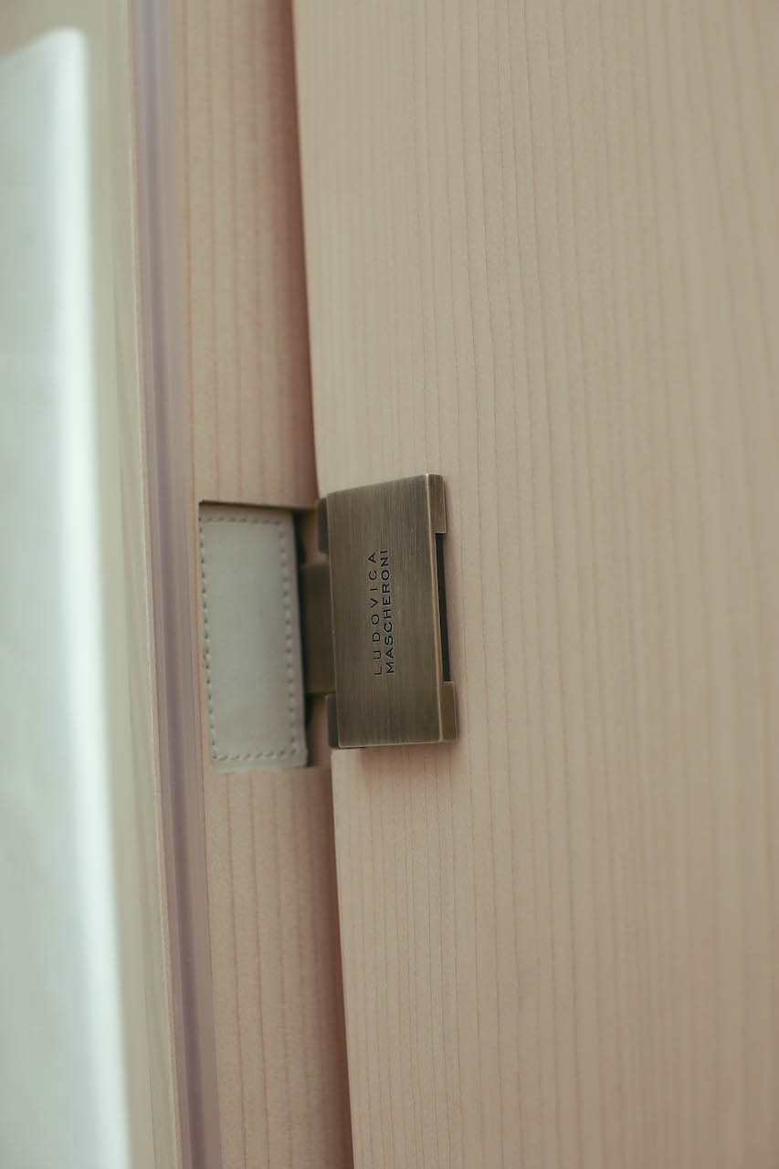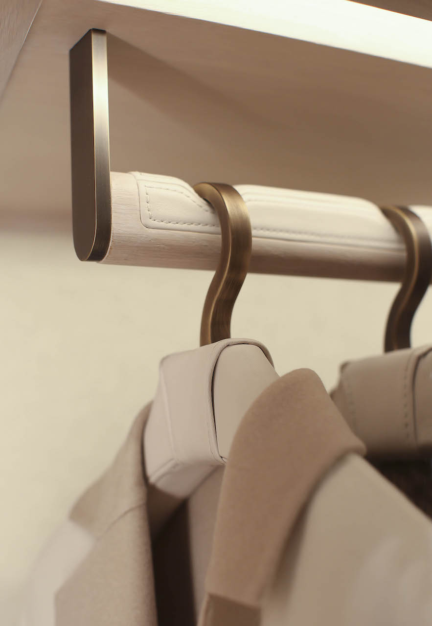 Nel basement, dove è il cedro a caratterizzare gli ambienti, uno spazio dedicato all’abbigliamento maschile, con armadi e cabine armadio e uno spazio lounge con mobile bar e tisaneria.