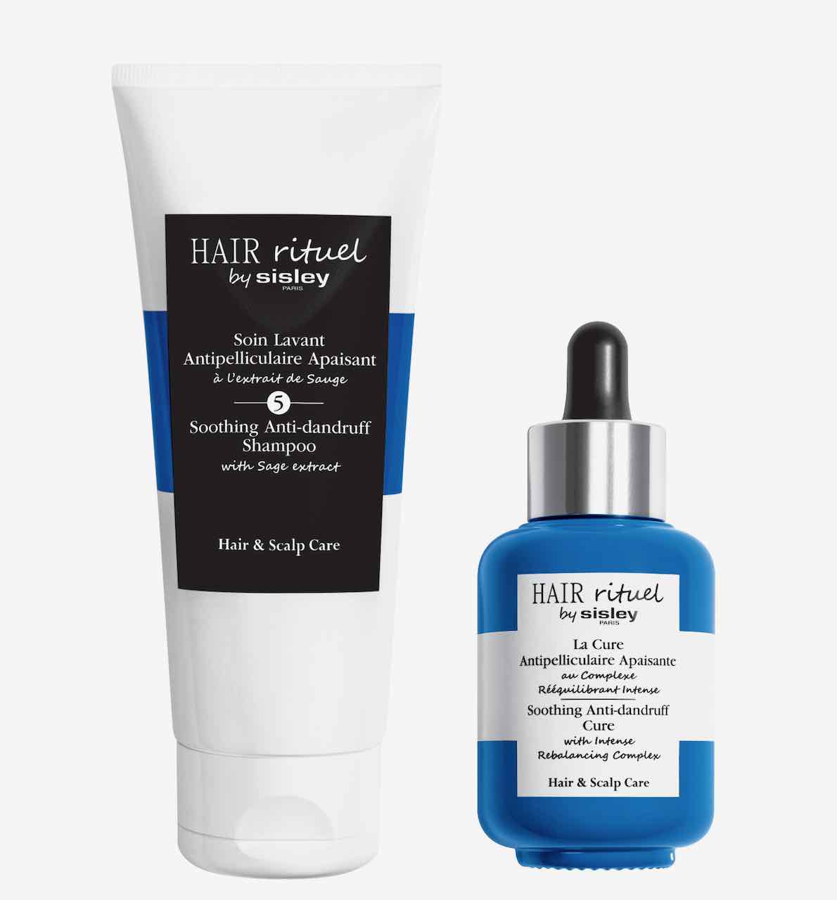 LE SOIN LAVANT ANTIPELLICULAIRE APAISANT à l’extrait de Sauge e LA CURE ANTIPELLICULAIRE APAISANTE au Complexe Rééquilibrant Intens, un rituale di trattamento intensivo che contrasta forfora e prurito per ritrovare un buon equilibrio capillare. Grazie a un complesso riequilibrante intenso composto da Piroctone Olamina ed estratto di semi di Sedano, il rituale antiforfora Hair Rituel by Sisley preserva l’ecosistema del cuoio capelluto assicurando un risultato ottimale e un’efficacia prolungata. Purifica e riequilibra il cuoio capelluto regolando il rinnovamento cellulare per frenare la desquamazione. I principi attivi della formula rafforzano la barriera cutanea e il sistema di autodifesa del cuoio capelluto per una protezione ideale.