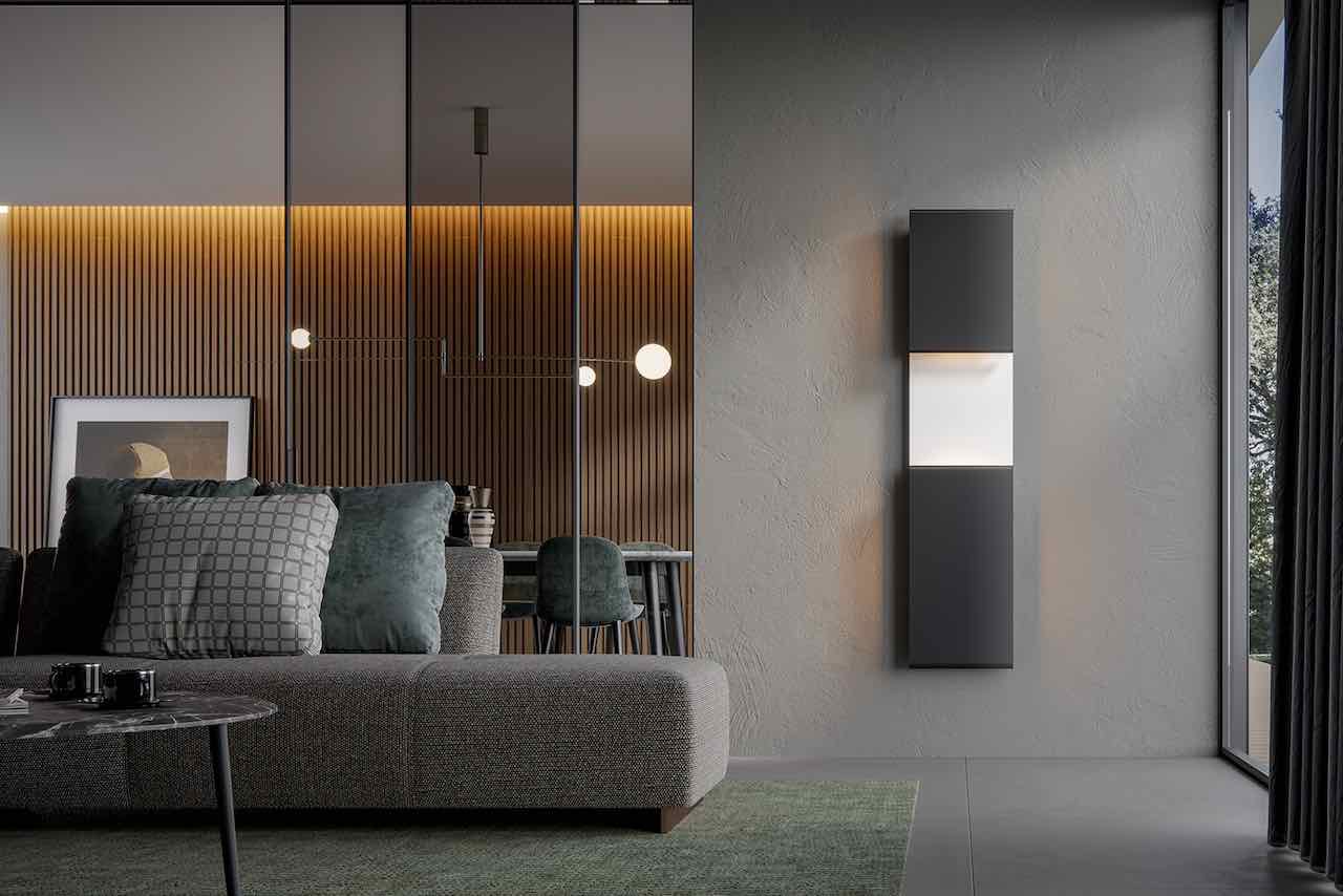 Due anime che si uniscono in solo termoarredo. Scirocco H fonde luce e calore per dare vita a Starlight, il radiatore di design formato da una sottile lastra in acciaio con impianto di illuminazione a LED completamente integrato nella sua struttura. La sinuosa forma, disegnata da Franca Lucarelli-Bruna Rapisarda, con gli estremi ricurvi e chiusi da due eleganti cerchi in acciaio, è stata ideata per ricordare le antiche pergamene.