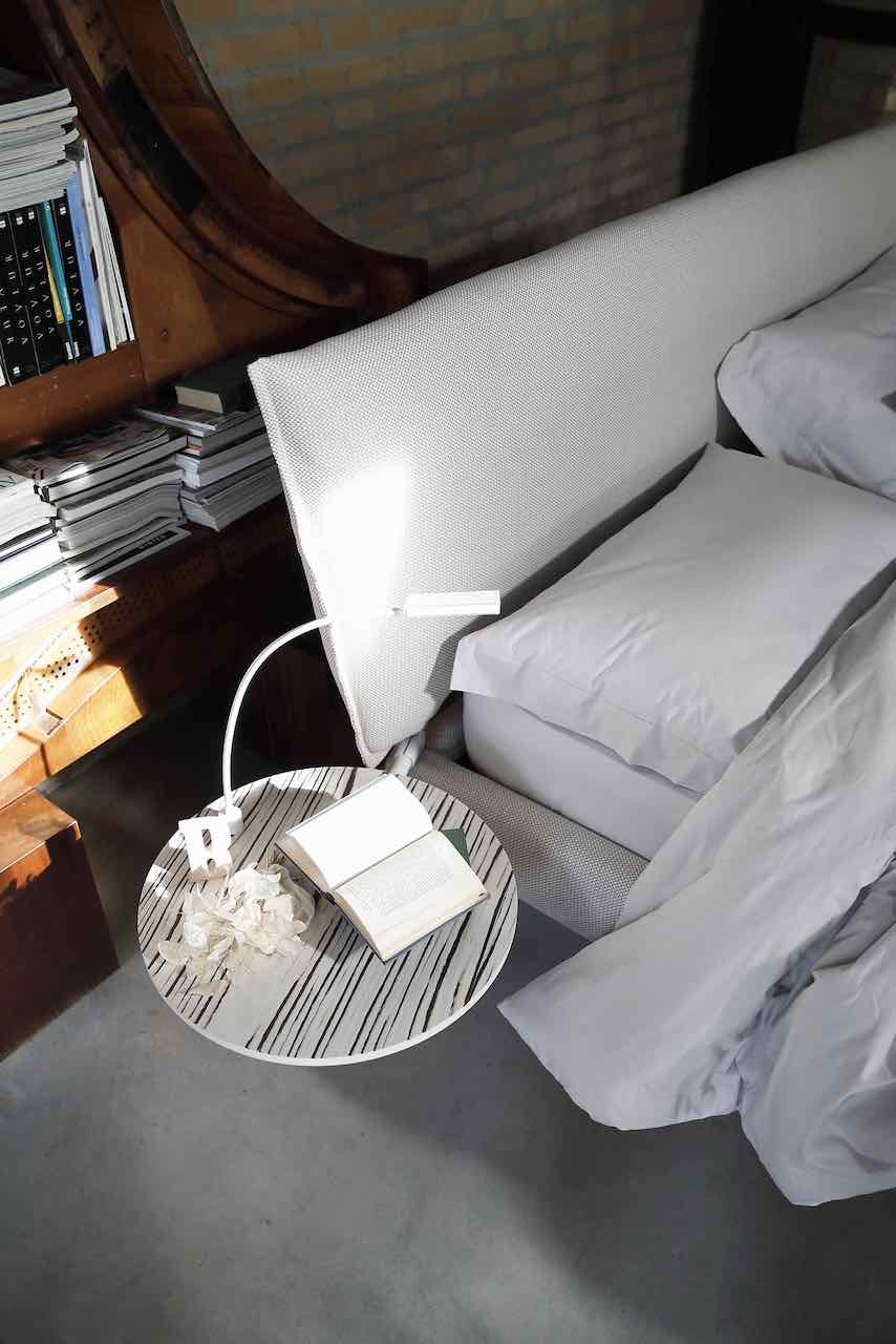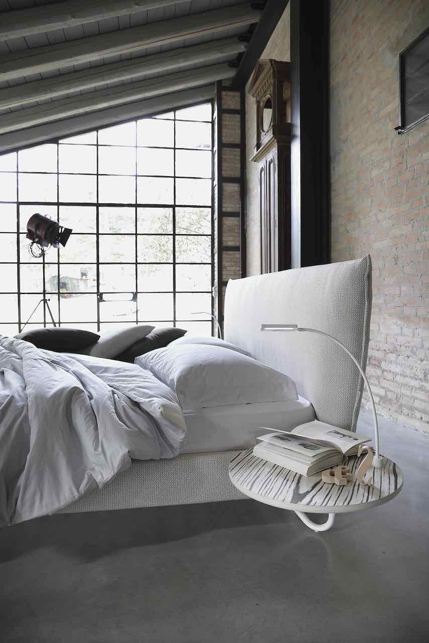 Linee originali, essenzialità ed elevato contenuto di design sono i tratti distintivi di Hug 04 Soft di Noctis; la morbidissima testata – realizzata in schiumati super soft che le donano un aspetto accogliente e raffinato – può essere accessoriata anche con pratici tavolini d’appoggio.