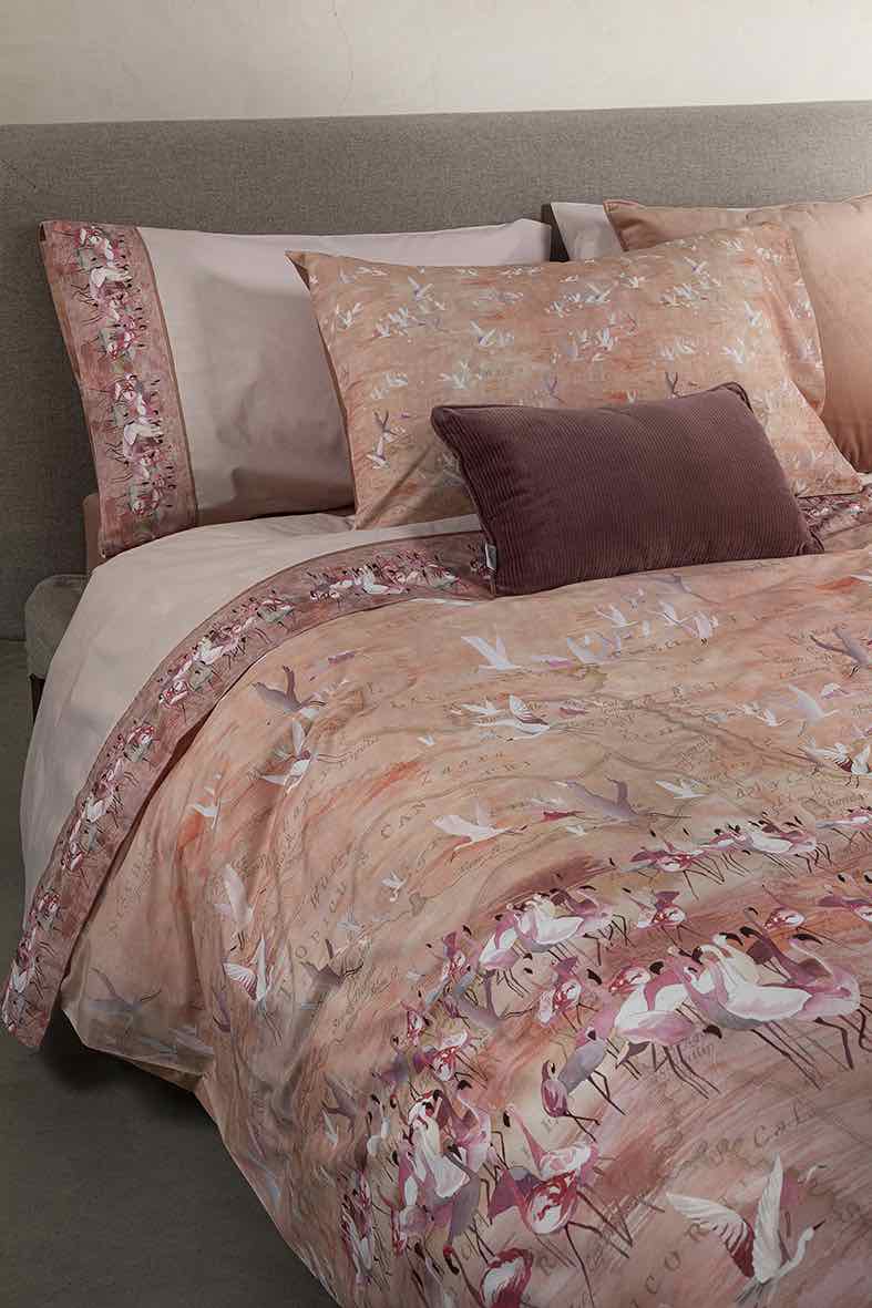 FAZZINI prosegue il viaggio nella natura iniziato con la scorsa stagione. Il paesaggio, i suoi colori e le sue ispirazioni, diventano i contenuti di una nuova eco-estetica da cui prende vita un lifestyle emozionante, poetico, sostenibile. Superfici opache e dettagli lucidi, tanti velluti e raffinati cotoni, texture extra-morbide e sensazioni ruvide si avvicendano in questa nuova spiritualità dell’abitare in cui trionfa il piacere tattile. Le fantasie tono su tono, le rigature e i leggerissimi decori grafici, i foliage e le fioriture, le stampe ispirate alle opere dei pittori giapponesi di fine Ottocento e quelle della tradizione classica italiana si mescolano con naturalezza.