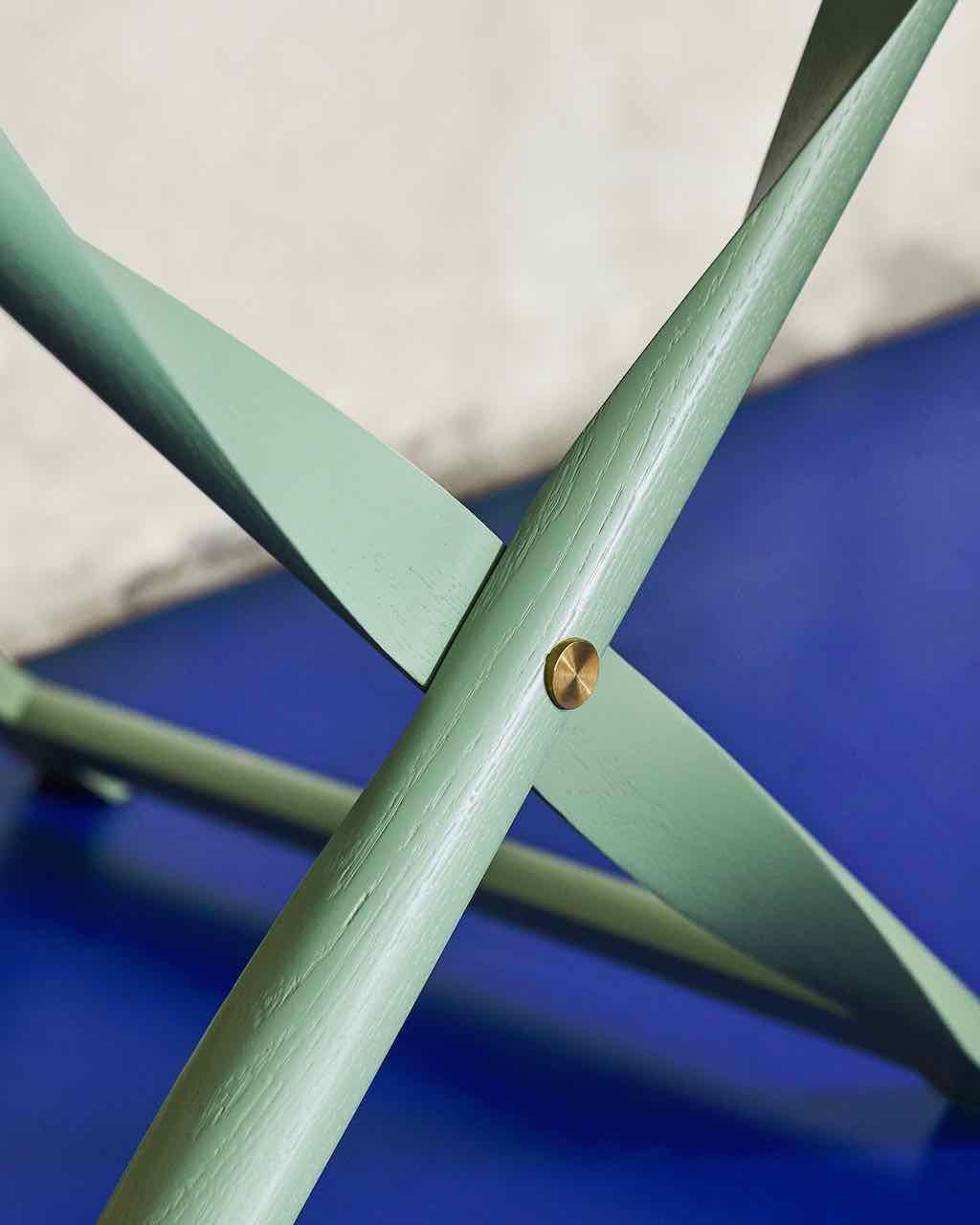Il Propeller Stool presenta una costruzione matematicamente impeccabile e incarna l’ideale di sgabello pieghevole voluto da Klint. Questo pezzo di design si compone di due gambe imperniate al centro dal taglio elicoidale che, quando piegate, formano una struttura verticale perfettamente arrotondata.