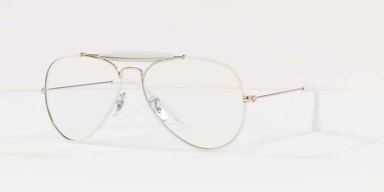 Una classica montatura argento con doppio ponte e finali asta rivestiti in pelle bianca lucida. Completano il modello le lenti fotocromatiche con filtro anti luce blu, che passano da trasparente a grigio se esposte alla luce solare.