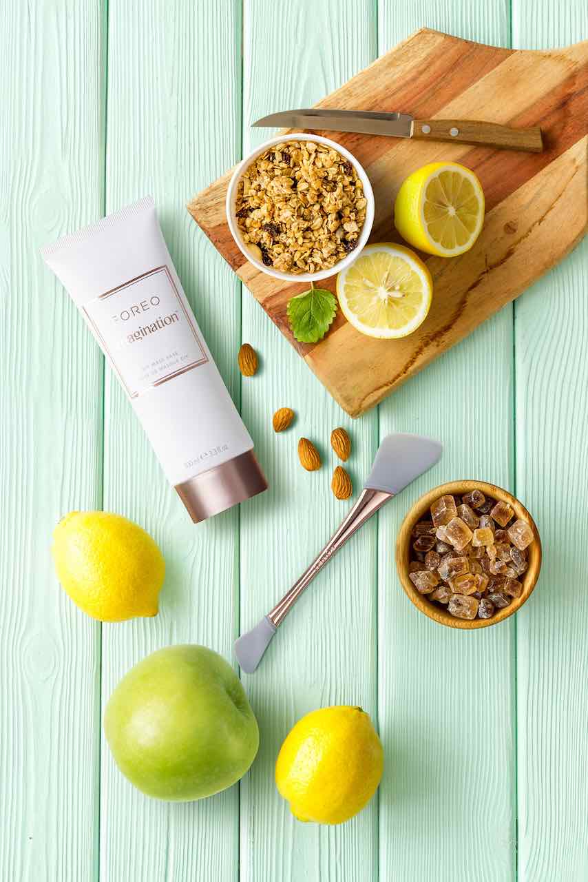 FOREO Imagination con base vegana, sicura ed altamente performante, per creare la tua maschera viso personalizzata utilizzando ingredienti naturali della tua cucina o dispensa: avocado, cetriolo, miele, camomilla… a seconda della tua immaginazione.