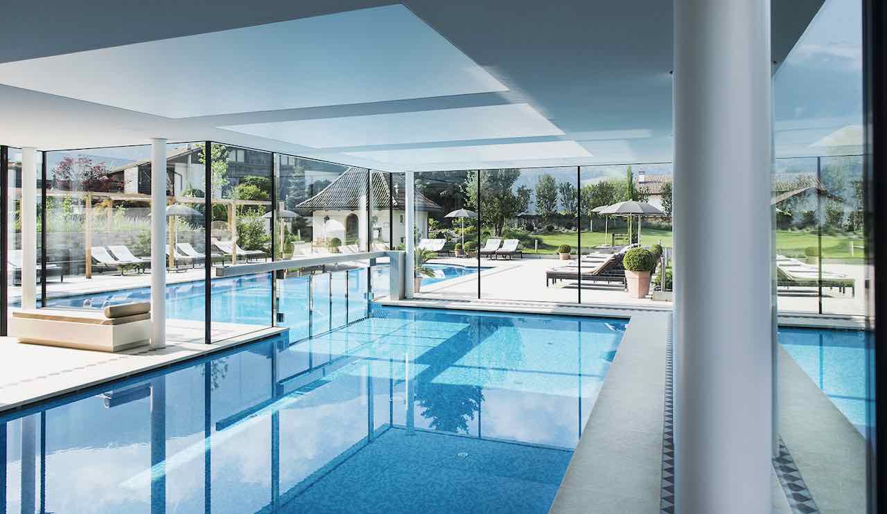 Anche l’area SPA offre un servizio di altissimo livello: due piscine riscaldate (interna ed esterna), cinque saune, percorsi benessere e giardini relax. La piscina all’aperto, ha una temperatura di 31 gradi ed è direttamente collegata alla vasca interna, affacciandosi su un panorama unico tra i meleti e le montagne. La sauna Kelo, invece, si ispira alla tradizione nordica ed è stata costruita in vero legno di Kelo di provenienza artica, ovvero, tronchi centenari di foreste finlandesi. All’interno di questa sauna si respira la forza della natura a pieni polmoni, avvolti da un fresco e gradevole aroma di resina, perché gli 85°c non affaticano la respirazione.