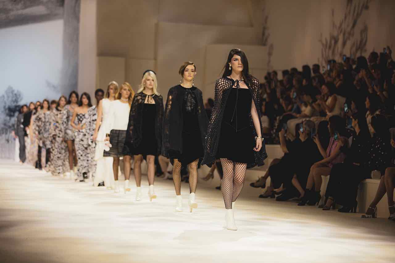 Il 2 novembre 2021, CHANEL ha presentato la sua collezione Cruise 2021/22 a Dubai, nel quartiere di Dubai Creek Harbour. La collezione ideata da Virginie Viard è stata presentata in un nuovo allestimento drappeggiato in tessuto beige punteggiato da ombre e proiezioni di rami d’ulivo, riecheggiando l’atmosfera della prima sfilata inaugurata lo scorso maggio alle Carrières de Lumières nel villaggio di Les Baux-de-Provence, nel Sud della Francia.