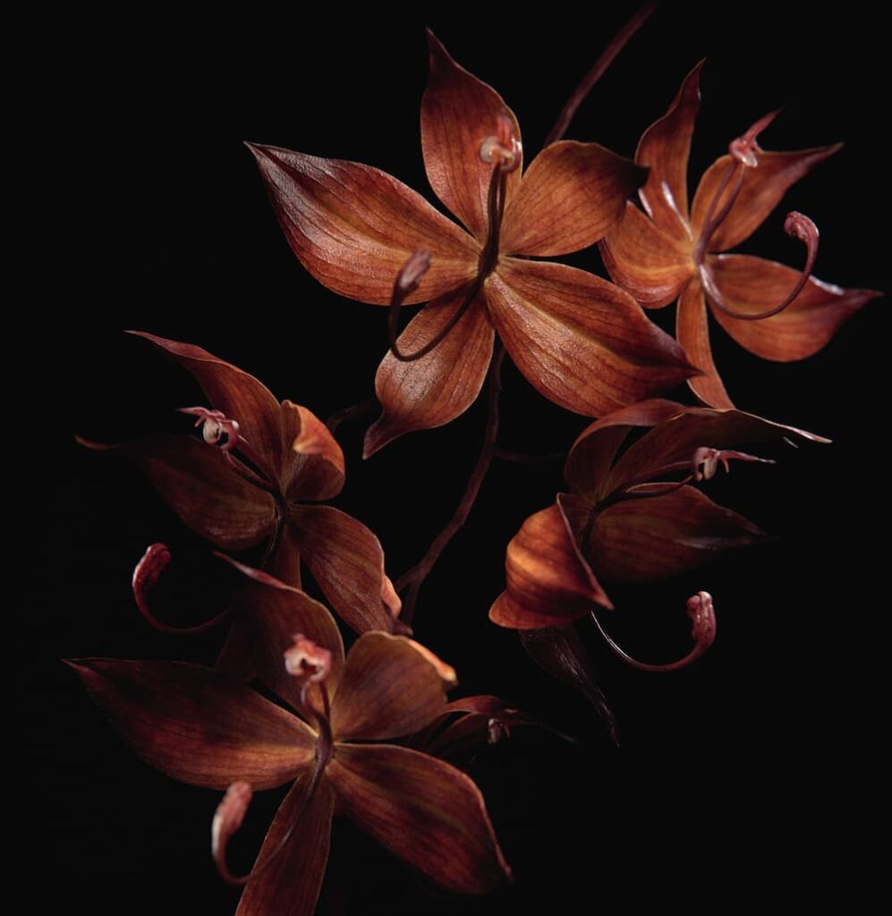 In questa rigogliosa giungla popolata da moltitudini di specie vegetali, le chiome degli alberi a volte sono talmente fitte da non lasciar filtrare un solo raggio di luce verso l’Orchidea Nera, che cresce fino a raggiungere un’altezza di circa 40-60cm. Questo ambiente ostile ha spinto la pianta a sviluppare un particolare meccanismo di sopravvivenza, che è diventato anche la fonte della sua straordinaria forza. Ogni giorno, questo miracolo della natura interagisce con l’ecosistema (suolo, cortecce, microflora, ecc.) e ogni sua parte, dalle radici fino allo stelo e i fiori, assorbe le sostanze nutritive e gli altri elementi indispensabili allo sviluppo. Mantenendo questa perpetua simbiosi con l’ambiente, l’Orchidea Nera riesce a sopravvivere nonostante le condizioni proibitive.